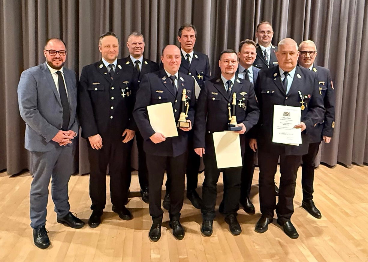 Nach den Ehrungen und Beförderungen gab es noch Grußworte von Bürgermeister Tobias Ehrlicher, Landrat Sebastian Straubel, KBI Detlef Schoder und KBR Stefan Püls.